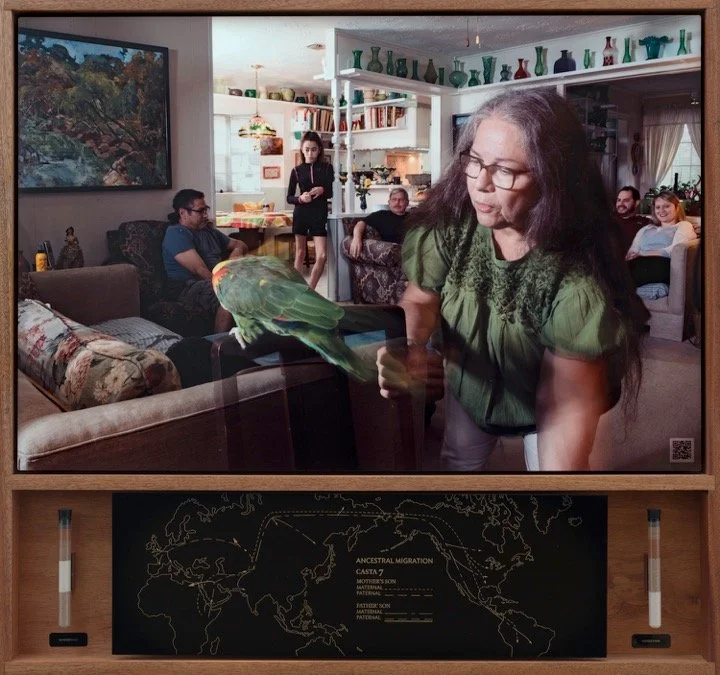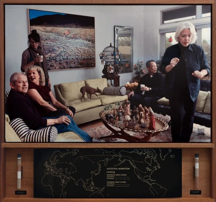 Contemporary Casta Portraiture: Nuestra “Calidad” is an ethnographic art project that examines the ethnic roots of Colonial Heritage Families by photographing genre portraits and DNA testing the descendants living in Houston and Albuquerque. The project builds on the paradigm that colonial families of the “New World” evolved from a global community. The nuances woven into the topic are identity, colonial power struggles, family history, the optic-unconscious, and biogeographic ethnography and how these experiences are expressed in our contemporary lives and culture.